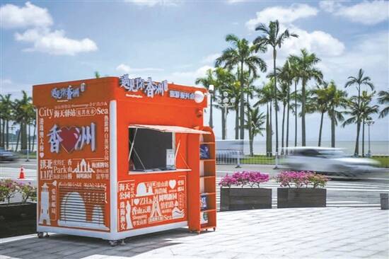 笔者发现,小屋设计上用象征青春活力,开放包容的橙、白为底色,附上珠海各个特色旅游点剪影与文字,整体造型时尚醒目,独具特色。目前,多处“遇见你香洲”旅游服务点已完成改造,它们分别位于海天公园、普陀寺正门、南屏华发商都B馆广场、湾仔旅游码头,还有更多的旅游服务点将在拱北口岸、轻轨站等陆续上线。