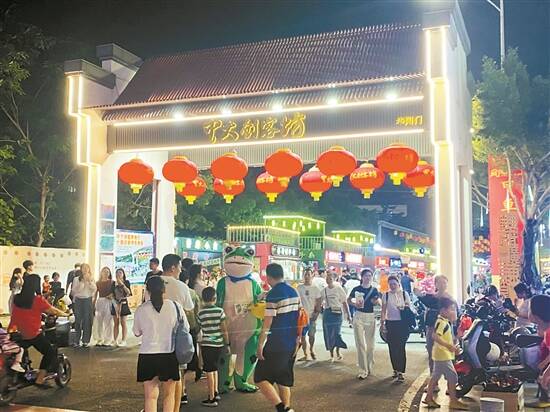 “逛累了?不存在,美食坊可还有两条街!”晚上逛街的旅客热情推荐笔者打卡华阳湖旁的麻涌创客美食坊。如果说华阳湖是绿水青山的自然风光,那么美食坊就是坐拥湖光山色和东莞烟火气的所在。麻涌创客美食坊包含华阳湖创客坊和中大创客坊两条街,包含超过1000种的美食。这里不仅有70岁阿伯的“传统特色糕点”摊、老莞人常吃的“虾推”、各种猪扒包牛杂店,还有长沙臭豆腐、老北京片皮鸭、公安锅盔等等,纷杂多样。