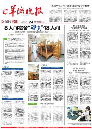 针对家长们反映的问题,8月23日,校方做出了回应:“《广东省义务教育标准化学校标准》中对非寄宿制学校的午休场所暂无具体要求。乐从第一实验学校小学部全部为走读生,为了满足广大学生对午休场地的刚性需求,学校从服务和公平的角度出发,对午休场室的床位摆放和数量进行了调整,而本次调整未涉及场室内部结构和消防设施的变动。”