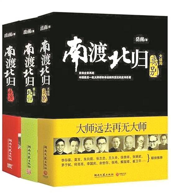 谈及岳南本人,最难避及的是其《南渡北归》系列的锋芒。《南渡》《北归》《离别》三部曲囊括了民国时代一群风骨绝尘名家的浮与沉,他们的个性,或迂或狷或痴或狂,珍贵有余,这之中有光环但并不刺眼,岳南貌似随意地信手拈来,有褒有贬、有庄有谐、有血有泪、有喜有悲。他们是二十世纪人文科学领域的大师级人物,如蔡元培、王国维、梁启超、梅贻琦、陈寅恪、傅斯年等,岳南对这些知识分子群体命运做了细致的探查与披露,对各种因缘际会和埋藏于历史深处的人事纠葛、爱恨情仇进行了有理有据的诠释,全景描绘了抗日战争时期流亡西南的知识分子与民族精英多样的命运和学术追求。让读者在大师们巨大的光环底下,仍能瞥见他们最真实的一面、最温暖的一面、最可爱的一面,令人心胸豁然开朗的同时,又不胜唏嘘,扼腕浩叹。