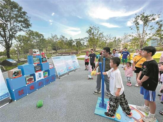 碧岭街道充分发挥平台载体作用,借助坪山区儿童公园的区位优势和调动辖区志愿服务资源,打造了老少皆宜、寓教于乐的禁毒特色品牌“禁毒的小鸟”趣味活动。该活动借鉴经典的“愤怒的小鸟”游戏模式,将“小鸟”作为炮弹,将“毒品”道具作为投射目标。群众参与游戏在收获乐趣和奖品的同时,还增强了对各类毒品的辨识能力。