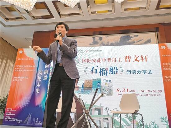1954年1月,曹文轩出生于江苏盐城,苏北水乡的成长背景是他取之不尽、用之不竭的创作源泉。在盐都区学富镇中兴街道的周伙村,是曹文轩生活了近20年的老家。“出门三里,要走五座桥”,水乡既是他的生活经验,也是他的小说背景,培育了他的审美,涵养着他的性格,也深深地影响着他的叙事方式与情感表达。曹文轩本次携来珠海的新书《石榴船》便取材于他的童年所见:二十世纪六七十年代,苏北水域上生活着一群船民,他们靠水运为生,以船为家,他们的孩子无法接受正规的学校教育。后来,当地县教育局派来一位优秀老师,于是,船队就有了驳船上的“水上学校”,船上的孩子便有了和父辈不一样的成长,一个个因教育而蓬勃成长的生命让读者感受到了浪漫而传奇的色彩,就像曹文轩的成长历程中所看到的那样。