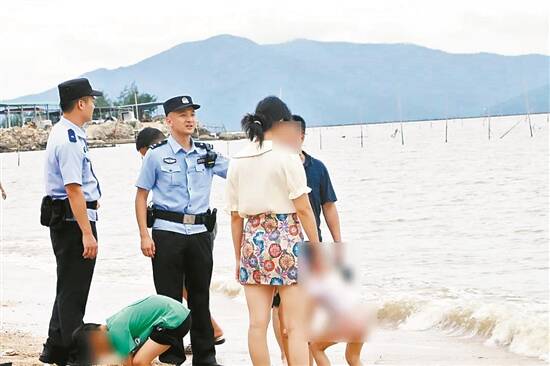 台山公安劝说游客尽快离开海滩 江公宣供图
