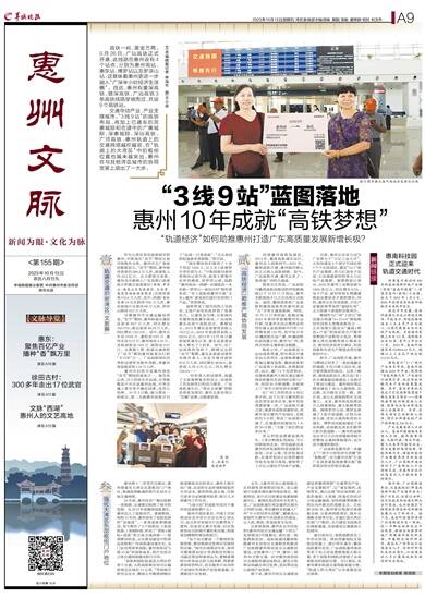 交通带动产业,产业支撑城市。“3线9站”的高铁布局,再加上已通车的莞惠城际和在建中的广惠城际、深惠城际、深汕高铁、广河高铁,惠州轨道上的交通网络越织越密,在“轨道上的大湾区”中的枢纽位置也越来越突出,惠州在与其他湾区城市的协同发展上踏出了一大步。
