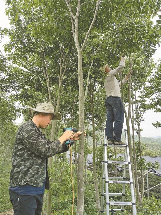 “传统沉香从种植到结香最短也需要8-10年才有收获,不仅效率低下,而且时常要面临结香少、结香难、质量差等问题,使得沉香标准化、规模化种植难度加大。”惠东县绿棋楠研究中心负责人、林业高级工程师郭向阳介绍,如今的绿棋楠系列品种具有结香早、结香快、品质好、产量高等优点,种植3-5年就可以用普通电钻打孔结香,结香3年左右普遍可以达到沉水品级,正成为香农们眼中的“香饽饽”。
