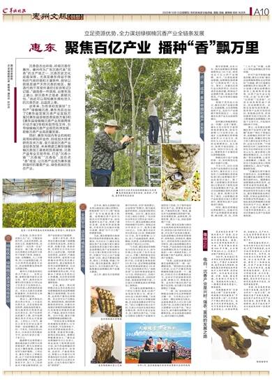 近年来,为传承和发展好“土特产”绿棋楠沉香,惠东先后出台了《惠东县发展沉香产业实施方案》《惠东县退桉改香实施方案》和《惠东县绿棋楠沉香产业发展两年行动方案》等相关指导性文件,引导绿棋楠沉香产业规范有序发展,助推沉香产业高质量发展。