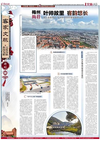 产业平台打造方面,梅县区将畲江产业园、水车产业园和城东白渡产业园“三园合一”,形成梅县工业园(集聚地),着力将园区建设成为全区产业集聚发展新高地、实体经济发展新引擎。目前,梅县产业集聚地9.28平方公里纳入省产业转移主平台, 获评省级电子信息技术特色产业园,引进了头部龙头企业津晶集团,已签约庆达科技智能电机、欣桐科技智能电控板等项目。同时,还依托现有铜箔、高锰酸钾、石墨烯等资源优势谋划建设新能源应用新材料产业基地,打造新能源汽车、储能设备、5G智能终端(机器人)等新兴产业配套。此外,高水平、高标准建设广东省首个内陆型综合保税区——梅州综合保税区。目前,梅州综保区一区落户企业27个,1-9月完成进出口额9.34亿元;二区建设顺利推进,年底申请封关验收;梅州国际陆港建成,到盐田、南沙海铁联运班列成功试运行,融湾入海开放发展平台成效初显。