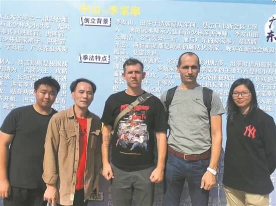 锴信在佛山工作了十多年,会说粤语。他很喜欢中国武术,在佛山学过咏春拳、白眉拳、洪拳。2016年夏天,他看到南派螳螂拳的相关资料后,专程来找陈建明了解。当时,这个身高一米八几的外国壮汉被陈建明的力道所惊,问道:“师傅,你这么瘦,最多60公斤,可我的手一碰到你,整个人就被拉过去了。你是怎么发出这么大的力道?”并当场表明想要学习。