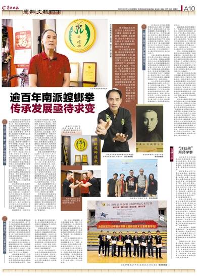 惠州自古崇文尚武,历史上涌现众多本土拳法,如龙形拳、李家拳、白眉拳、莫家拳等,还有不少拳法在此生根发芽、传承发展,其中,南派螳螂拳就在惠州传承上百年。
