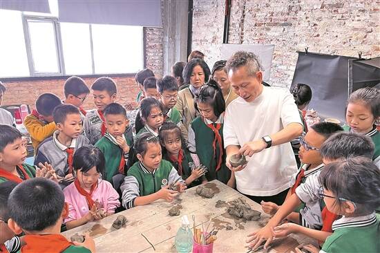 羊城晚报讯 记者黄松炜、通讯员吴海瑞摄影报道:11月14日,佛山市中小学“非遗进校园”研学活动启动仪式暨陶塑专题活动在黄志伟艺术馆举行。来自佛山市冼可澄纪念学校的45名小学生到馆参观,在中国工艺美术大师黄志伟的讲解和指导下,学习石湾陶艺的历史、特点及代表作品,兴致勃勃地进行陶塑创作。