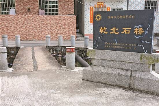 在乾务镇乾北村,一座没有护栏的石板桥横跨于蜿蜒的溪流之上。如果不是旁边伫立的文物标识牌,很多人可能还不知道这座石板桥已经服役了300多年,这是珠海现存可使用的最古老桥梁,它藏身村落一隅,见证了数百年来乾务村落发展历程。