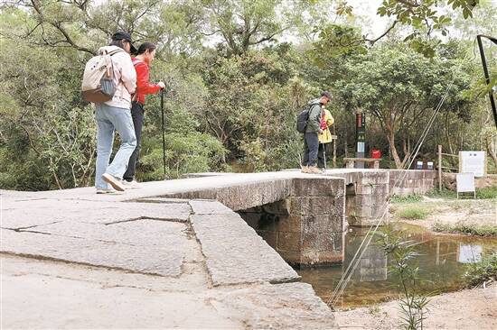 林海云野、古道西风、山林葱郁、泉鸣溪清,诗意、静谧却充满着生机的长南迳古道在珠海的山林间散发着无限魅力。全长约6公里的古道上,每一条石板路都承载着历史的痕迹,仿佛在讲述着古老的故事。作为古时候上栅、官塘等地村民往来于前山、澳门的主要通道,一座三孔桥石桥成为了百余年间香山地区与澳门交流往来的必经之路。