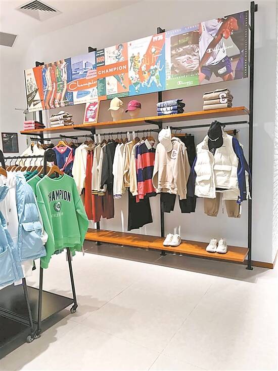 Champion门店内售卖的服饰 羊城晚报资料图