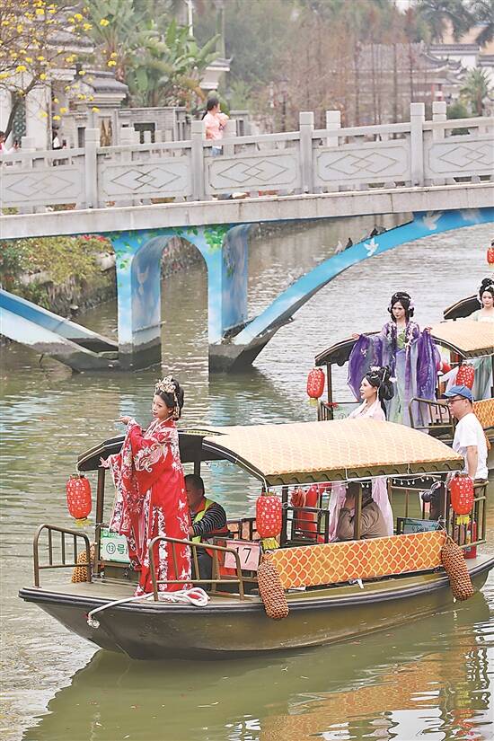 走进风景如画的紫南文化旅游区,环绕村庄的河涌经过清淤美化,变成“紫南船说”水上游河道;普普通通的池塘经过改造,成为大型水舞声光秀的绚丽舞台;闲置旧屋,摇身一变成为洛神艺术村特色民宿;一座曾经荒芜的农庄也蝶变为吴信坤雕塑艺术园;一块400亩的零散碎片化菜地,被打造成一座休闲农业观光园“阿农湾农耕文化园”……如今,紫南文化旅游区已形成了旅游+农业、旅游+文博、旅游+教育、旅游+体育、旅游+工业等“旅游+”系列业态。