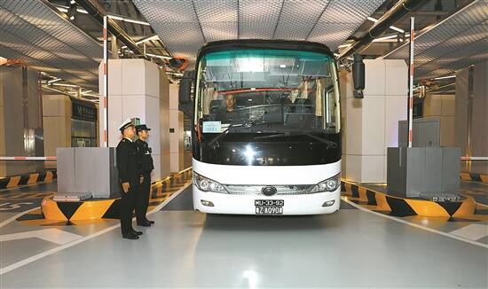 横琴口岸联合一站式车道正式启用后首台通关大巴车 张建林 摄