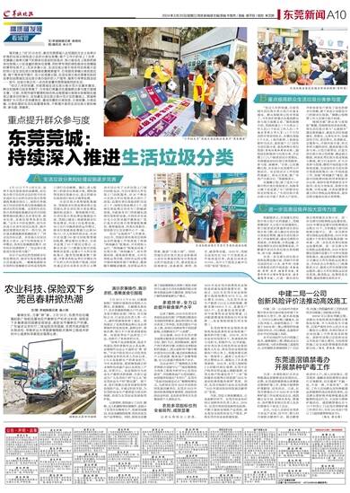 “经过几年的创建,目前莞城生活垃圾分类示范片区基本建成。群众知晓率已经非常高了,今年我们将重点在提高群众参与度方面做文章。”据张毅刚介绍,莞城将建立1个分类办工作人员+1个社区工作人员(1个物业管理工作人员)+1个引导员的专项宣传队伍,在辖区选取2个小区、1条内街巷、1条商业街作为试点,逐家逐户上门宣传生活垃圾分类、派发两种分类垃圾袋(其他垃圾和厨余垃圾),鼓励居民积极参与垃圾分类,并定期上门入户抽查居民分类情况,有效提高居民垃圾分类知晓率、参与度、准确率。“目前,已在旗峰公馆、步步高小区局部单元开展试点。在总结试点工作经验的基础上,将由点至面,推广至各产生源点位。”张毅刚表示。
