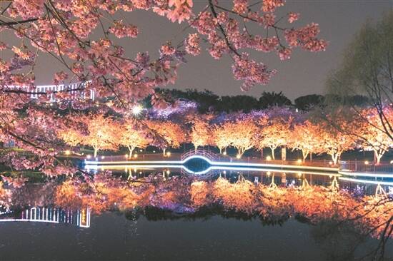 在美团平台上,该景区夜场票已售出数千张。据景区市场营销负责人杨雨介绍,考虑到有不少市民游客白天要上班、上学,景区去年举办了首届“夜樱节”,今年新增了打铁花、舞龙等活动,3月底前还将营业时间延长至21点,算起来每周可为游客增加近30小时的赏花时间。