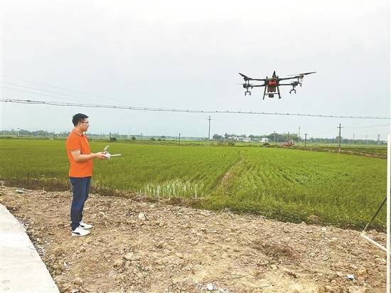 在江门农业生产中,无人机应用也十分广泛。3月6日,在江门开平市月山镇高阳村种粮大户胡勇明的田地里,喷施药剂的无人机来回穿梭于田地上空,很快便完成了约8公顷(120亩)田地的农药喷洒工作。胡勇明表示,无人机已成为春耕生产的新农具,大大提升了农作效率:“以前除草,8公顷(120亩)田地需要几天才能完成,有了无人机飞防服务,一个上午就可以完成施药除草工作了。”据了解,目前,开平市供销社已通过供销信息大平台实现了资源共享,拥有可调配的农用植保无人机20台,能够完成日均400公顷(6000亩)的飞防作业。