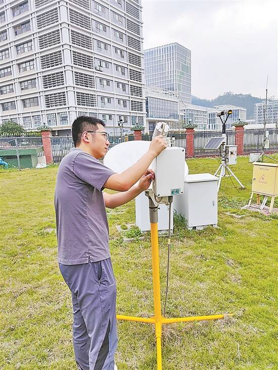 陈逸伦进行微雨雷达仪器维护 受访者供图