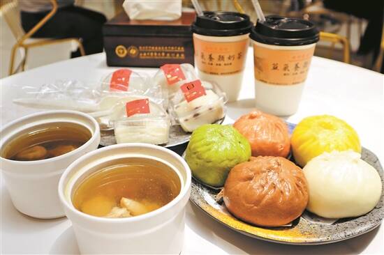 走进罗湖区中医院梧桐药膳坊,一股淡淡的中草药香扑鼻而来,甘草、茯苓、当归、决明子……各种中药材整齐排列在盒子中,戒烟茶、除湿降脂茶等茶包依次摆放在陈列架上。在点餐台,各式中式面食如五行包子、五行馒头等,以其独特的色彩,吸引着食客的目光。润肤美白奶茶、益气养颜奶茶、暖脾健胃奶茶令人跃跃欲试,银耳炖雪梨、消膏祛脂水等养生饮品吸引了不少顾客。此外,以传统食材为基础,结合现代烹饪技艺而做成的红豆山药糕、百合马蹄糕等各类糕点既满足了味蕾的享受,又体现了中医养生的智慧。