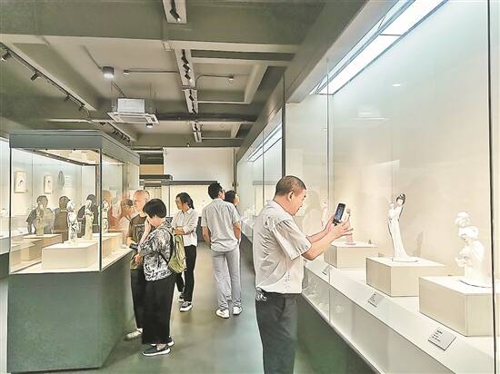 《海风轻轻吹》《温暖的阳光》《红叶题诗》《竹影禅音》《举杯邀明月》……展览现场,一件件充满诗情画意又蕴含着生活气息的作品让人眼前一亮。本次展览展出吴维潮不同时期创作的瓷塑作品63件/套,国画作品15幅。展览围绕“诗性之美——仕女篇”“天真活泼——孩童篇”“善用媒材——仙佛文人篇”“简约雅致——青花篇”四个部分展示,让观众深入感受吴维潮独特的艺术风格和作品中蕴含的深厚文化底蕴。