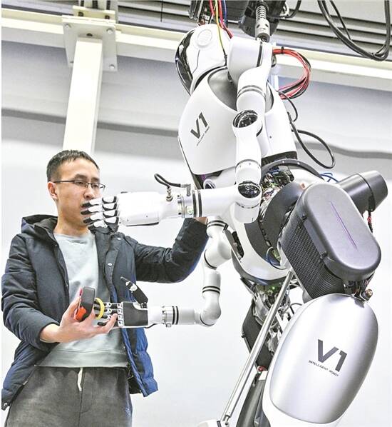 中国科学院自动化研究所人形机器人攻关团队科研人员在多模态人工智能系统全国重点实验室调试机器人 图/新华社