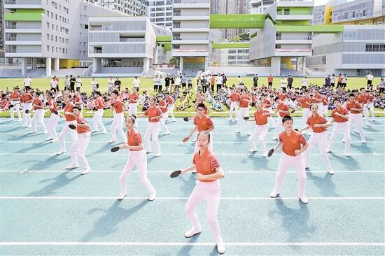 开幕式上,福田区实验教育集团翰林学校带来的乒乓球操、北京大学附属中学深圳学校的集体舞蹈、红岭教育集团石厦初中部带来的花球啦啦操、福田区外国语小学的集体篮球操以及福田区实验教育集团侨香学校带来的健美操赢得掌声连连。