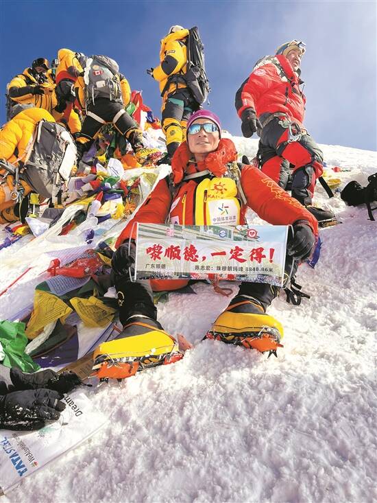 此前,作为土生土长的顺德人,陈志宏攀登计划中把顺德传统文化与攀登精神相融合,将顺德香云纱、广绣等传统文化元素一同带上海拔8848.86米的世界之巅,同时用行动传递“自然敬畏”和“生命敬畏”的理念,激励更多的顺德人,不畏艰险,再攀高峰。此次登顶活动得到了中国体育彩票的支持。