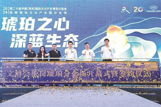 5月21日,第二十届中国(深圳)国际文化产业博览交易会松岗琥珀文化产业园分会场活动开幕。本届文博会松岗琥珀分会场以“琥珀之心·深蓝生态”为主题,以文商旅深度融合为导向,融入商业、休闲、文艺、娱乐、体验等多种元素,拉长拓宽旅游产业链条,打造大型城市综合体和文化商业新地标。