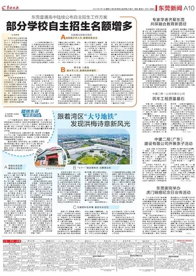东莞市教育局表示,2024年,东莞市普通高中学校将招收在人文、数理、体育、艺术、科技等方面有学科特长或创新潜质的学生,按高水平项目类和特色项目类2大类别自主招收特色发展学生。进一步鼓励和引导普通高中合理规划办学定位和特色发展方向,深入推进特色普通高中学校建设,坚持“五育并举”,促进学生全面发展。