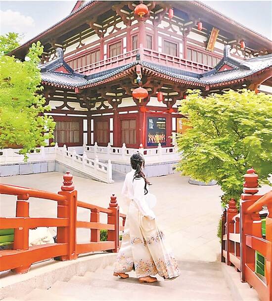 除了景区,融合了城市特色且不断创新的“新中式”文旅供给正日益丰富,渗透到方方面面,“汉服酒店”“国潮餐饮”也悄然走红。