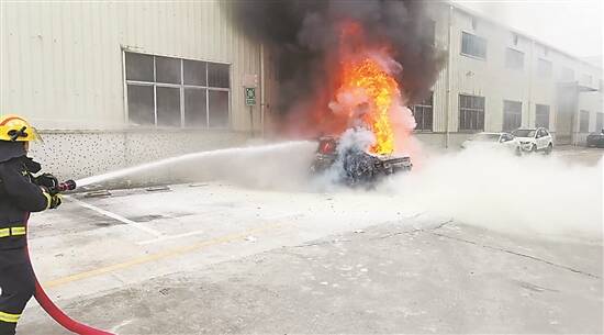 记者了解到,消防救援人员到场后发现,涉事车辆正处于燃烧阶段,救援人员迅速做好现场警戒,并疏散周围人群。随后,铺设双干线两支水枪对火势进行扑救,经过10分钟的处置成功将明火扑灭。
