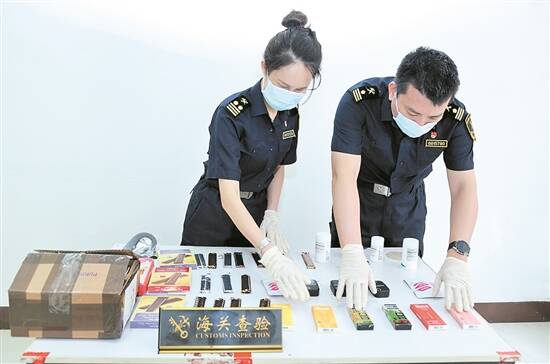 据介绍,近日,江门海关所属外海海关在进境快件渠道监管时发现,一票包裹机检图像可疑,随即对其开箱查验。经查发现,该包裹内装有大麻油1瓶、大麻糖2包及大麻电子烟9支。经专业机构鉴定,该批物品均含四氢大麻酚(THC)成分。目前,该案件已移交海关缉私部门处理。