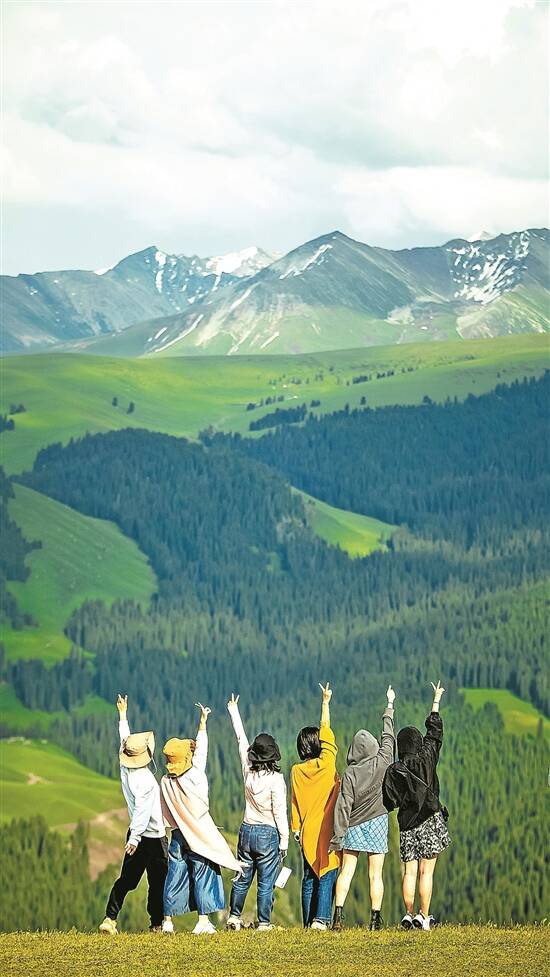 望着广柔的高山草原、森林和雪山。伸出手,接受大自然的馈赠 图/视觉中国