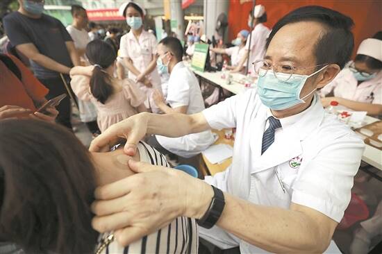 天灸的配穴与药物,每年都会有微调。今年入伏前,暴晒暴雨轮番上阵。这种又湿又热的天气下,不少市民容易出现湿疹、消化不良、咳痰喘、大便异常等症状。李滋平介绍,广东省中医院专家团队根据今年的气候特点,以“冬病夏治,培正气、祛湿气”的治疗思路,调整了今年的药物和配穴,市民可通过现场辨证进行针对性贴敷。