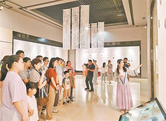 专业导赏员带领观众步入展厅,讲述铜镜展品背后的故事
