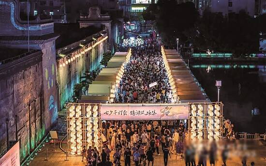 此次活动设置“金风玉露一相逢”“爱语千言汇心声”“琴瑟和鸣共良宵”“银河洒墨咏七夕”四大主题区域。禾坪上,精致宫灯装点着云集万千风物的国风文创雅集;下天街,写满不同表白语的千千彩灯,吸引行人成群结队漫步其中;围屋后院,一句句“唐诗宋词”从树上垂落,营造一片光影场景;在上天街,两侧的宫灯和中央的竹笼交相辉映,民乐四重奏在一轮“满月”前奏响,曼妙音乐声声入耳息……