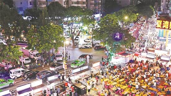 一盏盏灯光、一个个摊位、翻飞的锅铲、嗞嗞作响的烧烤架,空气中美食香味四溢。夜色深沉,夏湾夜市的喧嚣是珠海人间烟火的聚集。“每天晚上10时左右,夜市就开始热闹起来,街上人特别多,一点都不能大意……”珠海市公安局拱北分局巡警大队副大队长何华林巡逻在大街小巷,肩上闪烁的勤务灯在人群中格外耀眼。