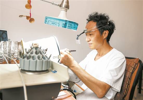 2014年,张冬偶然在网上看到橄榄核雕,便被深深吸引,从此与它结下不解之缘。“在厂里,我们制作手办都批量生产,没办法自由创作,而橄榄核雕就能肆意发挥创意。”深入了解核雕工艺后,张冬便购买材料自学,并不定期将作品分享到网上,与志同道合的网友交流。
