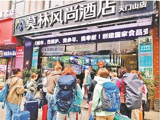 外国游客抵达湖南张家界天门山某酒店(资料图)