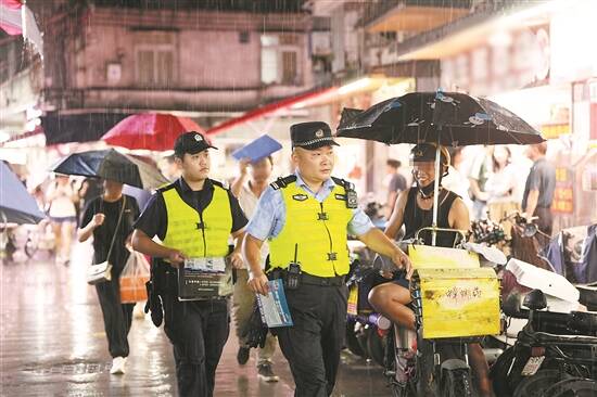 “宵夜档口油污重,电源插座一定要接地线、防老化,做到定期检查和及时更换,严防电线着火”“店里的刀具要保管好,防止发生意外”“厨余垃圾不要随地乱扔,容易堵塞下水道,台风天气可能引发积水倒灌……”9月9日晚,深圳市公安局罗湖分局黄贝派出所民警在辖区宵夜档口巡查时,对一家正在营业的宵夜档主进行安全提醒,并督促其落实好主体责任,加强隐患排查整改。据悉,行动期间,深圳公安对全市宵夜档重点部位、市级区级公园景区及高铁站(火车站)、汽车站、口岸、码头、机场、步行街等区域开展了一轮全覆盖治安安全风险隐患排查整治行动。