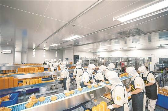走进位于惠城区水口街道的郭师傅月饼工业园生产基地,阵阵浓郁的饼香扑鼻而来。在生产车间内,“全副武装”的工作人员忙着包饼皮、揉馅等。不同馅料、口味的月饼经过烤制香气四溢,而后一个个香气四溢的月饼经过精美的包装,销往全国各地。
