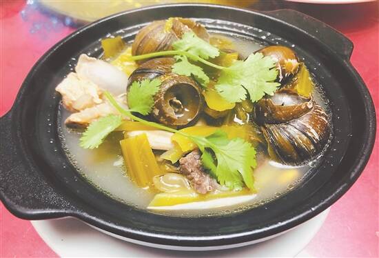 在畲江镇“田螺煲一条街”,游客可以品尝特色美食田螺煲。其食材主要有土田螺、猪筒骨、猪肘肉、猪肺、粉肠、黄豆、苦瓜、咸菜等,料足味浓,味道鲜美;再到畲江菊花糕姜糖厂购买特色美食,据了解,畲江菊花糕它用糯米为原料,加上麦芽、白糖、嗪糖、生油等搓成糕柸,成型蒸熟,冷却后即成。菊花糕是梅县畲江镇的特产,糕如菊花,比一般的糕点多了菊花的冷香和淡定,而且外形美观,质地软韧,香甜可口,齿颊生香,格外受人喜欢。