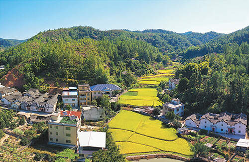 金灿灿的稻田,周边绿树成荫,色彩鲜明的南源世第,构成了一幅美丽的客家乡村图卷。现如今,南源世第打造集“文、农、旅、研”四位一体的文旅产业园,进一步激活乡村活力、带动了乡村振兴,探索出一条客家古民居活化利用、文化产业赋能乡村振兴的路子。