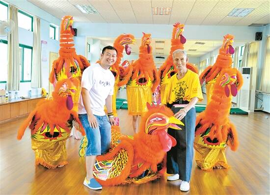 前山凤鸡舞的接力棒由鲍六(右)传递到湛嘉威(左) 香洲区文化广电旅游体育局供图
