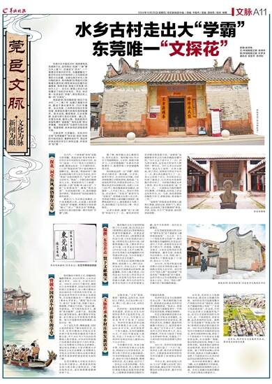 东莞水乡中堂凤冲村,相传曾有凤凰栖息于此,因而得名“凤翀”(“翀”意为向上直飞),后演变为“凤冲”,一个寓意吉祥美好的村名,也蕴藏着这个数百年历史古村独特的人文风貌和深厚的文化底蕴。这里也是历史名人陈伯陶的家乡,陈伯陶是《东莞县志》《胜朝粤东遗民录》等影响深远的著作的编撰者,暨南学堂(暨南大学前身)的创办人之一,在文化、教育上的巨大成就奠定了他的历史地位。而且,他还是一名妥妥的“学霸”,是东莞历史上唯一的“文探花”。