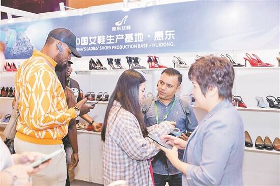 据惠东县商务局局长陈志光介绍,近年来,为推动鞋业外贸发展,惠东先后通过了国家外贸转型升级基地(鞋类)和全球采购基地(惠东·女鞋)认证,并依托平台积极组织企业抱团参加广交会等大型展会,不断巩固和开拓国际市场,尤其是中东、东欧、俄罗斯等新兴市场,把惠东女鞋品牌推向全球。