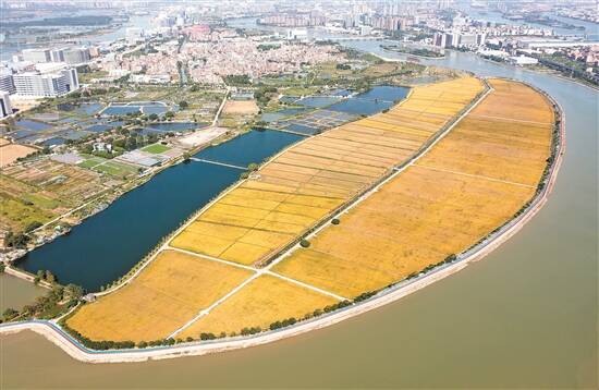 洪梅金色水乡稻田公园的千亩晚稻进入收割季