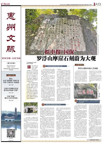 “这离不开民间力量的加持!”唐晓文说,众多石刻爱好者会自发加入寻找摩崖石刻的队伍之中,有的甚至坚持廿载。黄景营便是对罗浮山摩崖石刻文物保护贡献最大的当地村民,一人探索发现了新石刻30余处。
