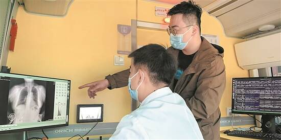 曾佳林协助当地影像医生为民众进行肺结核筛查